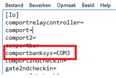 • comportbanksys instellen in de ini file