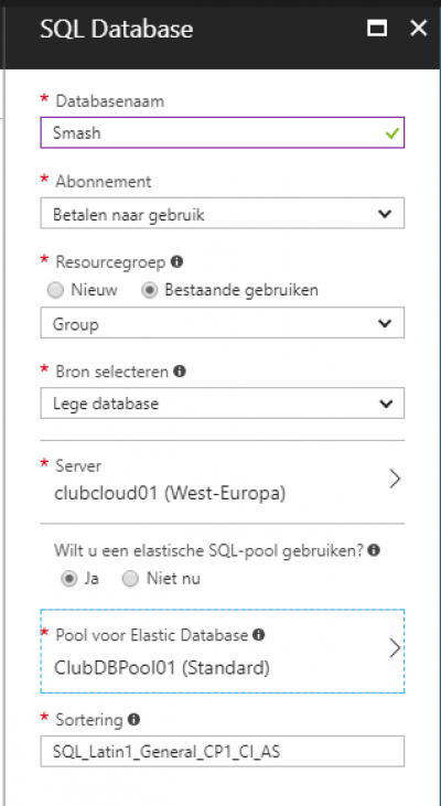1. SQL-databases selecteren en op “ + Toevoegen” klikken